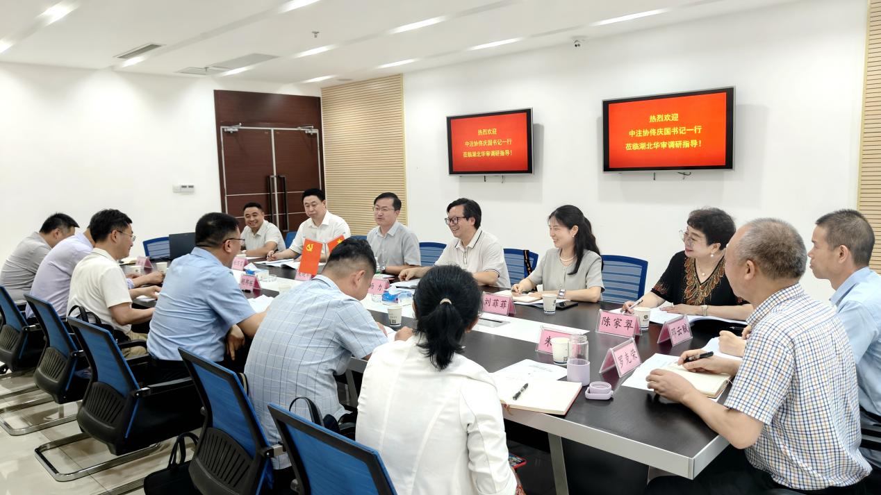8月1日,中国注册会计师协会党委委员、行业党委副书记佟庆国、中国注册会计师协会统战群工部副主任胡邦栋、覃炳林一行莅临湖北华审就统战工作开展情况进行调研座谈。