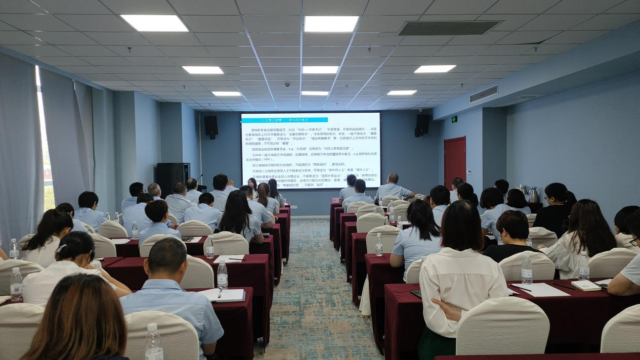 为进一步提高公司员工日常公文写作水平和应用能力,切实规范公文写作格式标准,6月11日下午,湖北华审在福江铭座三楼会议室开展公文写作与应用培训会,培训会特邀市委办公室综合二科科长钟辛作为授课讲师,公司全体员工参加培训。